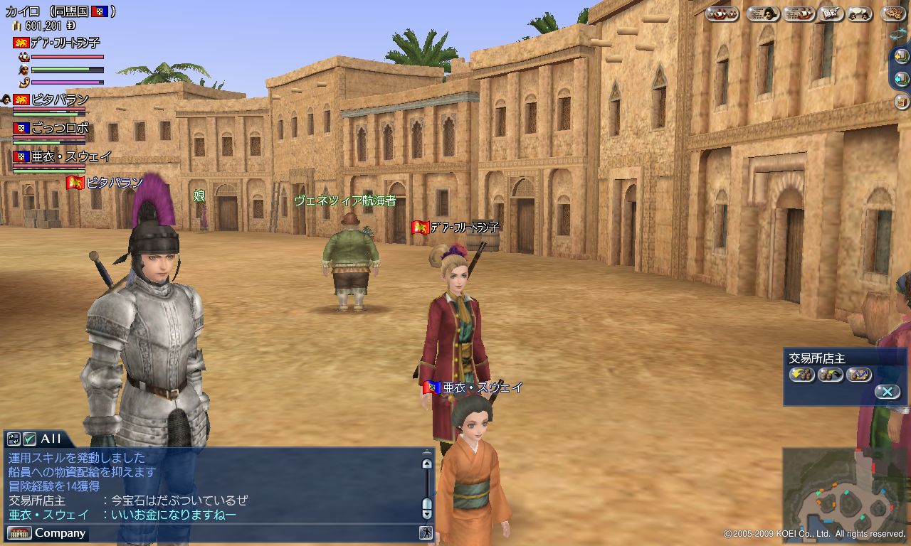 × [PR]上記の広告は3ヶ月以上新規記事投稿のないブログに表示されています。新しい記事を書く事で広告が消えます。 さて、年も明けて2010年となりましたが、 で、マディラ沖に差し掛かったところで、同行の亜衣さんに 同じ商会のビタパランさんから遺跡ダンジョンへのお誘いがあり、 わたしも便乗して同行させていただきました^^ ナポリでマッチロック銃を 買ってカイロで合流。 やはり同じ商会の ごっつロボさんと合流して 4人パーティーとなりました。 亜衣さんもわたしも陸戦は不慣れなので、他のお二人が頼りでしたが、 さすがに連日 できました。 勢いで一気にルクソール神殿 も攻略w 最後の最後でわたしだけ やられてしまいましたが^^; あと、やはり噂通りお宝がざくざく出てきました。 遺跡近郊のカイロでは常に宝石が暴落状態らしいですが、 それでもけっこうな金額になるようです^^ (わたしは後日別の街で売り払いました♪) パランさんごっつさんのおかげで滞りなく進めましたので、 敵の強さはあまり体感できませんでした^^; しかし、噂ではかなり手ごわいとの事ですので、 後日N鯖で再度訪れて、その地獄を体感してきたいと思います^^ (おまけ) 先日のN鯖にて ジパングから長駆EUへ帰って ジャカルタで受けた龍脳の納品をマルセで済ませて 立ち寄った酒場で 初めて見た自キャラの噂がこれかよ・・・( ;´Д`) PR