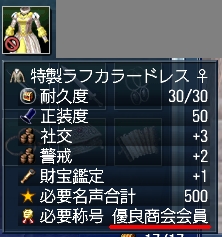 このお二人は、DOLで一番さいしょにフレになっていただきました。 その時はハッセが海事中学校の修了試験でお世話になりましたが、 この日もドレスを2着掘り当てて譲っていただきました^^ で、なぜカリビアンドレスを掘っていたかというと、 デアが別のフレさんから服をいただき、そのお礼の品として用意したからです。 後日、そのフレさんに無事お渡しすることができました^^ いただいた服というのが、その方の手縫いの『特製ラフカラードレス』だったのですが、 デアは商会に入っていないので、残念ながら現段階では着れませんでした^^; 将来なんとか着れるようにできれば、と思います。。 【名称】ハッセ 【国籍】ポルトガル 【Level】冒険:29、交易:47、戦闘:25 【主なスキル】縫製:15、工芸:11?、繊維取引:8 当初は海事志向だったが、そちらはジェノスク修了程度。 縫製は生計を立てるため、工芸はJB品などある程度自作できるように習得。 衣装は「きさく」な方向を好む。 イスパニアに生き別れた妹あり。 (キャラ作成:2008/10) 【名称】デア・フリートラン子 【国籍】イスパニア 【Level】冒険:30、交易:26、戦闘:18 【主なスキル】調理:11?、探索:6、考古学:5、宗教学・地理学:4、開錠:4 駆け出しの冒険者。 ポルトガルに生き別れた兄あり。 モロに1stのハッセで習得できなかった調理、冒険関係を補足するキャラ立ち。 (キャラ作成:2008/11) 以上のキャラの活動などをチラシの裏的に書いていきたいと思います。